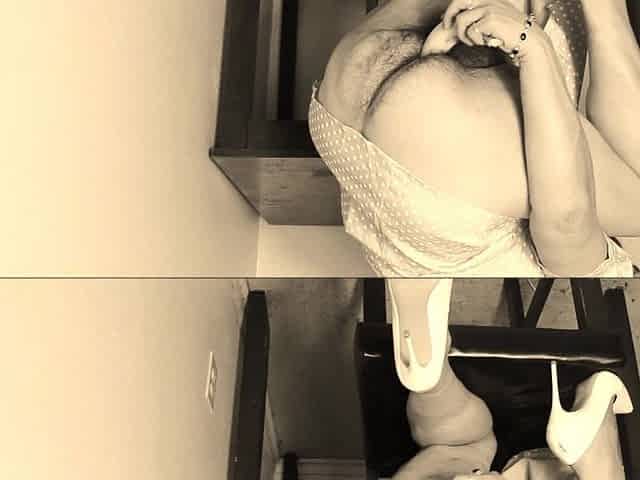 Curvy mother I'd like to fuck masturbates on a chair. Shaggy cunt.