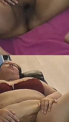 Curvy mother I'd like to fuck masturbates on a chair. Bushy vagina.