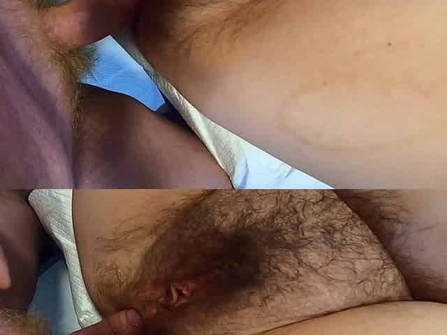 big beautiful woman playing with her hirsute twat