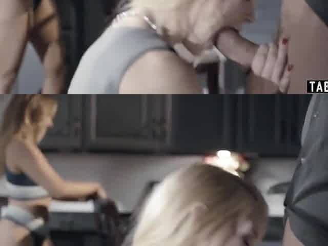 Stepmoms Friend Fingers Bangs Teen 18+ While She Prepares Diner