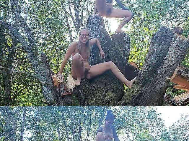 Blonde Babe And Her Girlfriend Play With Their Hairy Cunts And Asses Outdoor