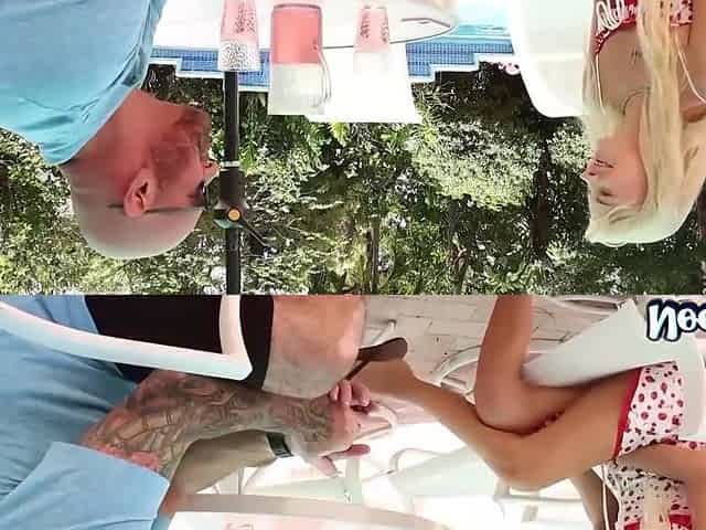Bionda Tettona Sborrata Sui Piedi