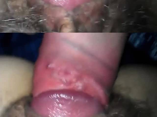 Close up fuck with cum on hairy pussy