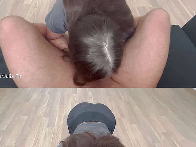 Curious goddess blonde milf socks gym footjob, kissing, blowjob, fucking hairy pussy, creampie and licking cum. Part 2