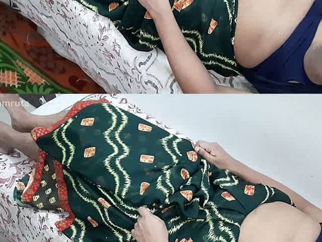 Beautiful XXX Indian Green Saree Aunty does fingering, Boob press & receives Cumshot from Devar