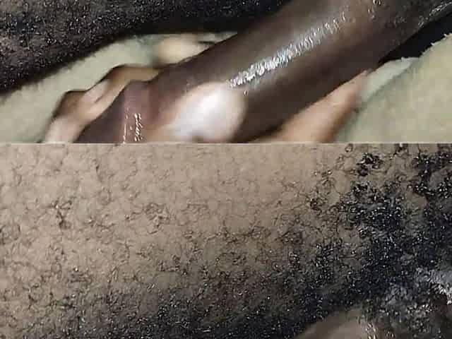 Hairy Creamy Ebony College Student Fucking with Boyfriend