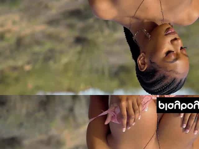Bombastic giant titted black angel Nyla discloses her bushy snatch outdoor