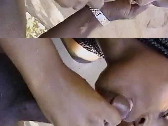 Nice cute ebony whores are serving three black guys blowing their dicks