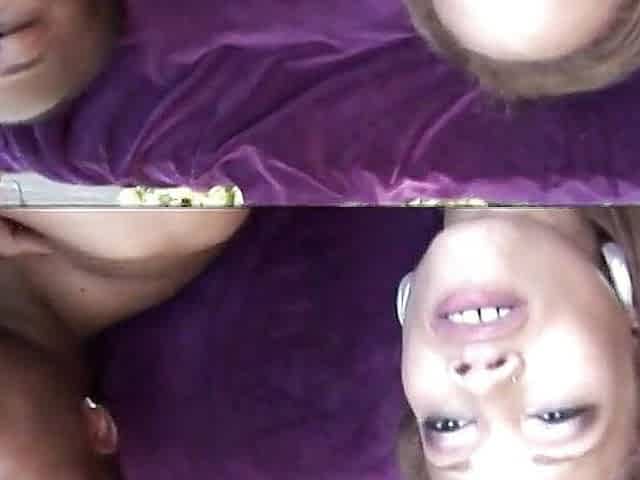 Interracial lesbian sluts finger fuck while muff diving in the couch