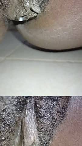 Beautiful Black Hairy Pussy Covered With Thick Cum