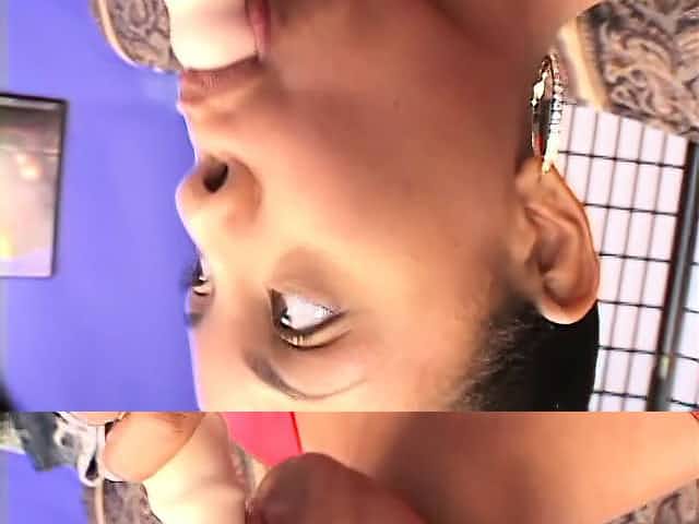 Sexy dark skinned babe Rianna Sylk works her hot lips up and down a big black cock
