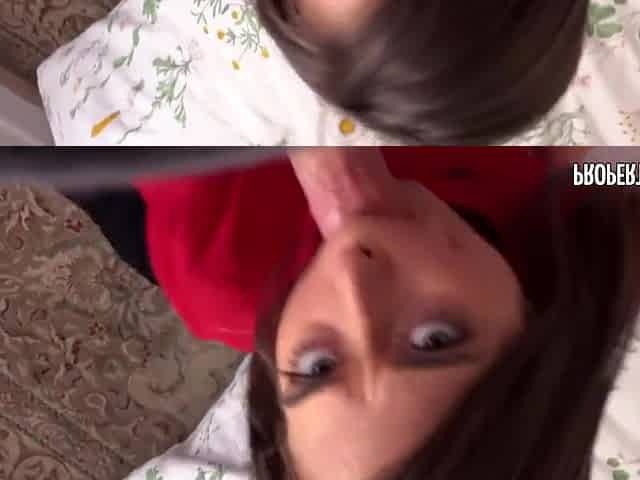 Busty Brunette Ladyboy In Black Panties Gets Her Hairy Dick Sucked