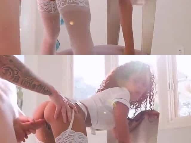 Scarlit - Mulatto In White Stockings Gets Pleasure From Sex With A Young Man - Scarlit Scandal