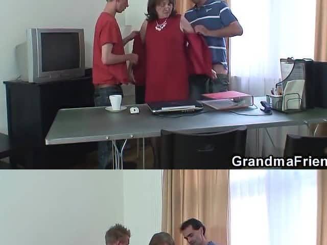 1080p Bitch Granny Lets 2 Young Cocks Fuck Her Hairy Pussy