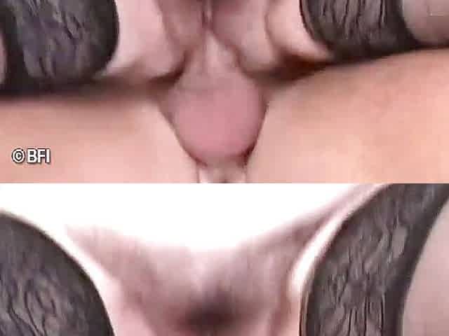 Spex gilf wearing stockings gets her hairy pussy fucked