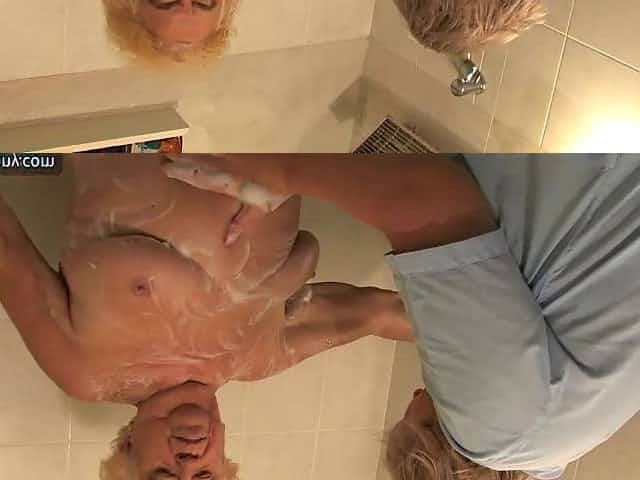 German granny seduce by younger man after shower on floor