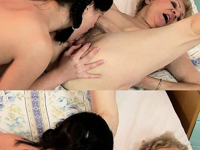 Sexy Granny fucks young hairy lesbian girl