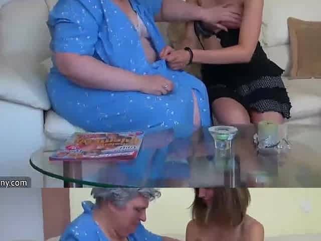 Old Granny with Gal, granny masturbate with a toy and with youthful Gir