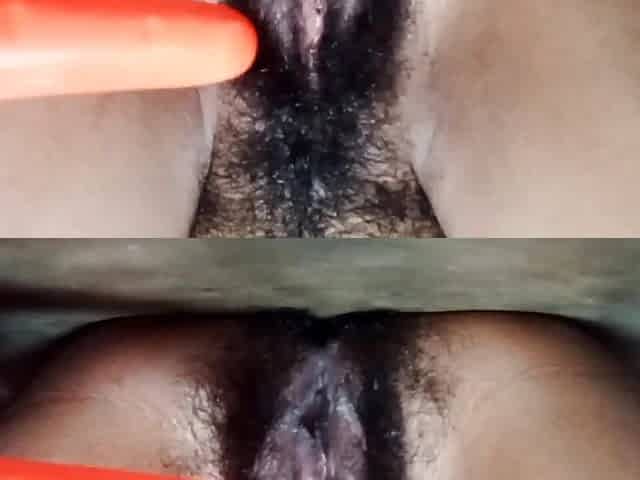The indian bitch fucks her hairy cunt with a zucchini and a bottle