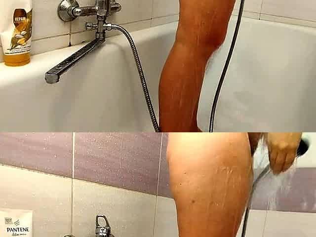 Saira Sexy Stepsister Bathing and Legs, Hairy Pussy Shaved