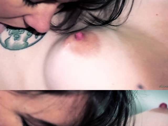 Huge tits, smooching