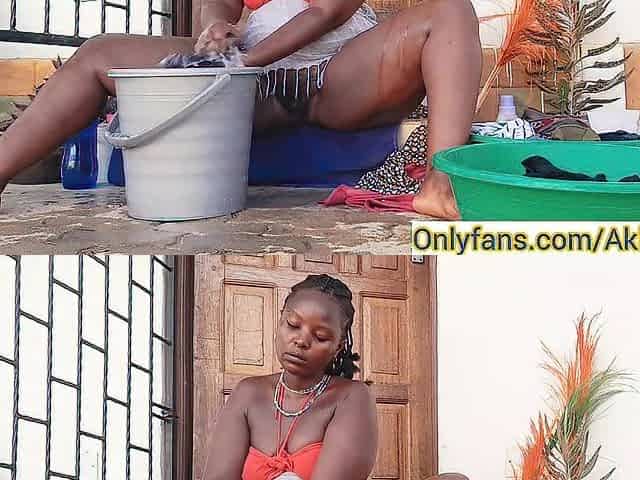 Afro honey AKIILISA handwashing laundry,curly obese snatch,and thick hips NO PANTS