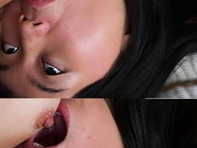 Asian newbie enjoys her first lesbian shoot