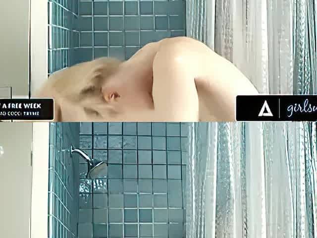 Lesbians fingering in small cabin shower (Remastered)