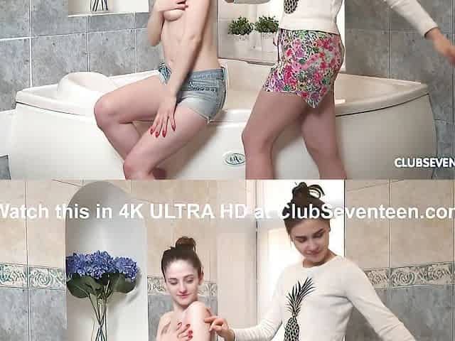 Hairy Lesbian Hippies Pleasure Each Other In The Bathroom