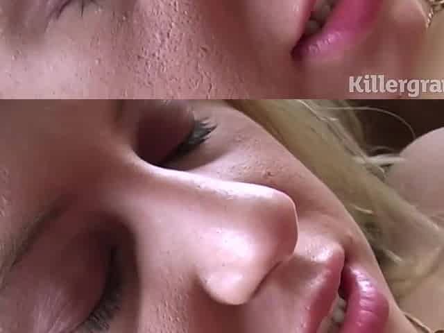 Big titted MILF scissors hairy 19yo blonde lesbian chick