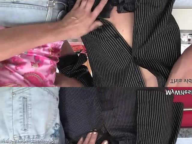 Mature bitch gets the other dude involved by pulling out his dick to suck