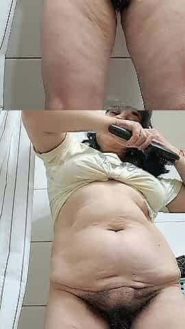 "hairy bush mature takes a soapy shower"
