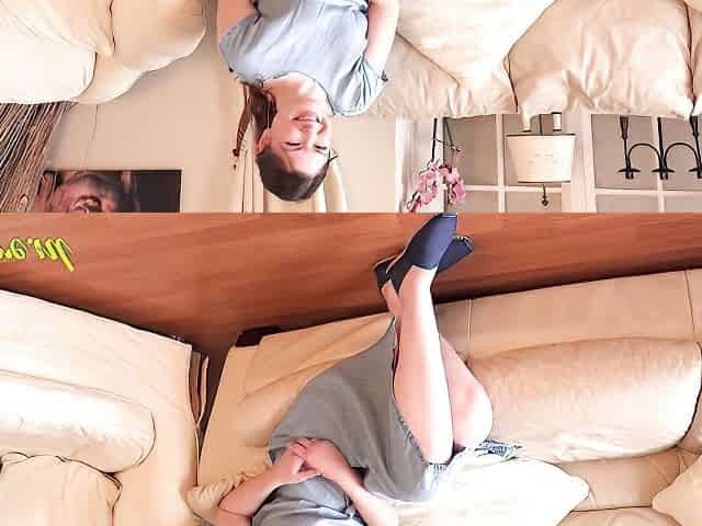 Aurora Odaire strips naked on her white couch. Aurora Odaire is wearing a new red dress on her white couch, She takes the dress