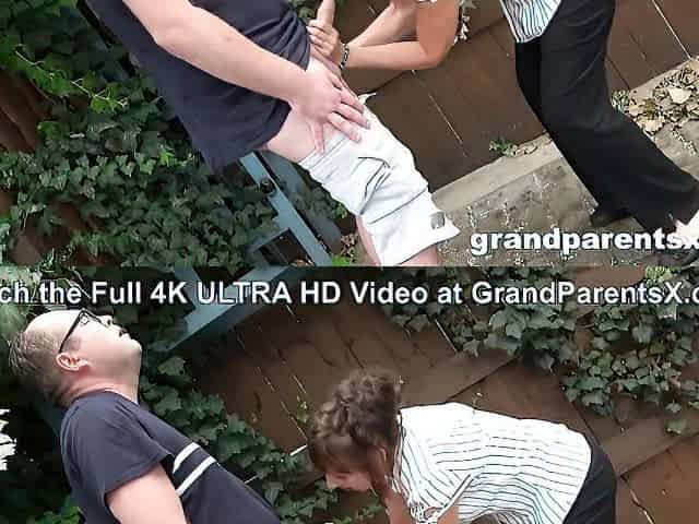 Mature with bush sucks and rides cocks of two excited boys