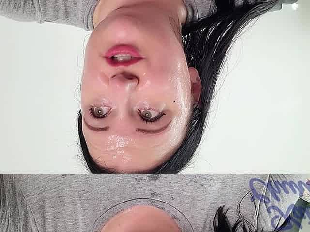 Katy's Sweaty, Dripping Face and Chest