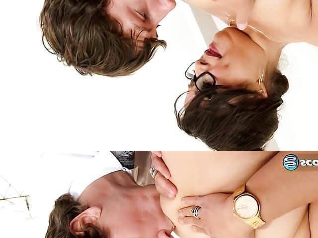 Busty beauty Maya Luna is sucking a pretty huge cock of a younger friend