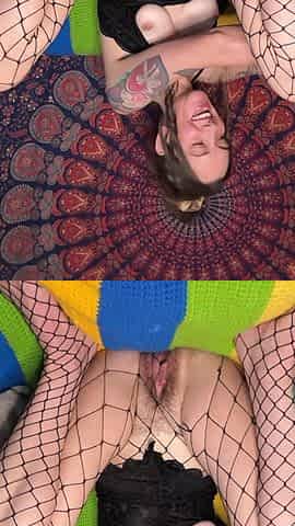 BBW Goth Girlfriend Fucks Hairy Creamy Pussy With HUGE