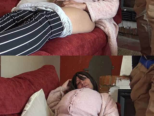 Horny Pregnant MILF Lets Stepson Cum Inside Her Hairy Pussy
