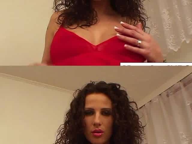 All in red, Liz masturbates and rubs her pussy madly