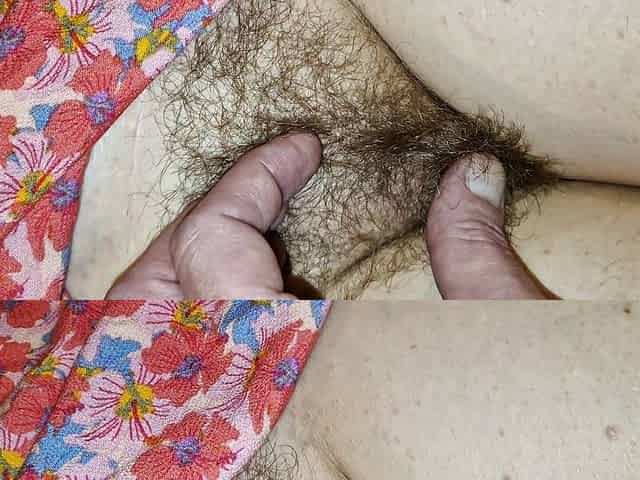 51 year old woman showing her hair and opening her gap with her fingers