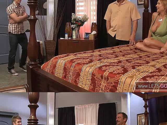Hot milf fucks her new boyfriend and his stepson