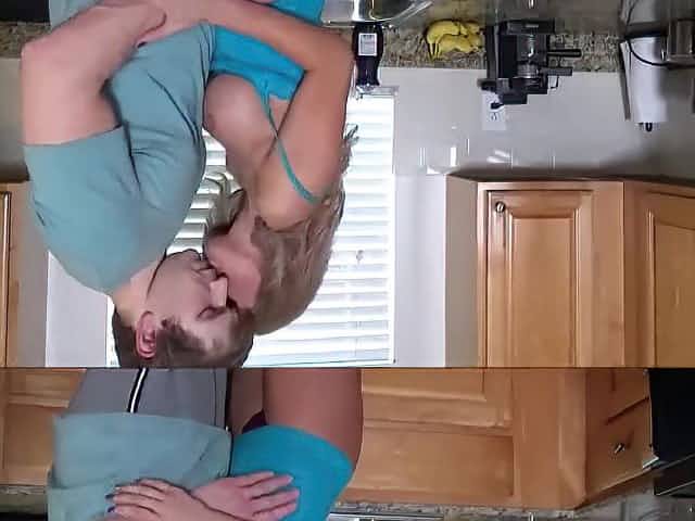 Breasty blond mom gave a oral-sex to her step- son previous to they had sex in the kitchen