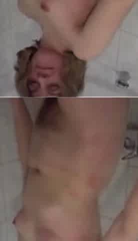 Hot Blonde Fingers Her Hairy Pussy in Bathroom
