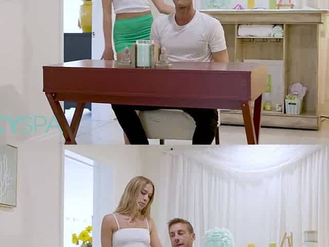Crystal Chase begs stepdad for a massage & sucks his big cock instead of pleasing him