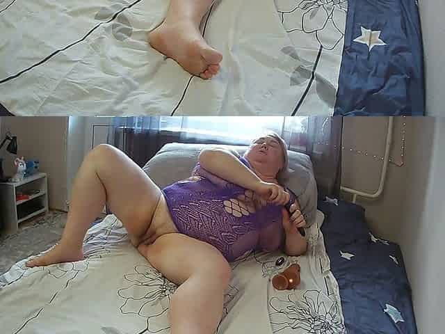 Masturbation of Mother-in-law with Big Tits, Ass and Hairy Cunt