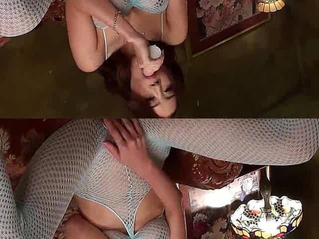 Japanese Teen Model in Fishnet Body seduce to real Orgasm while Deep Riding big Dildo at Casting