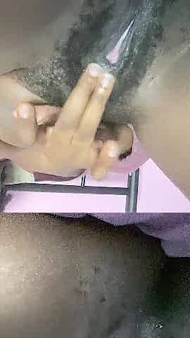 Bushy black solo masturbation