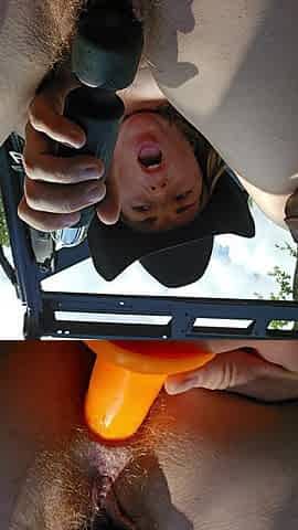 Redhead Fucks Ass and Hairy Pussy Outside Squirting Hard