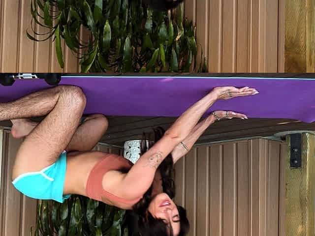 Hot amateur couple enjoys foreplay in the bedroom as milf does some bare yoga with her big tits and hairy pussy