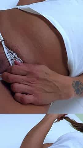 Masturbating cunt by pants / Hotty plays with pants in her cunt